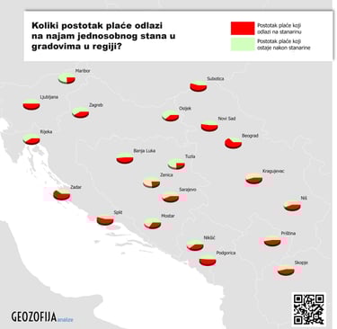U Zagrebu je za najam jednosobnog stana potrebno izdvojiti 40 % posto plaće, u Sarajevu 42 %, u Skopju 45 %, u Ljubljani 50 % te u Podgorici 52 %. Od svih glavnih gradova u regiji, situacija je najnepovoljnija u Beogradu gdje je za najam jednosobnog stana potrebno izdvojiti 64 % plaće.