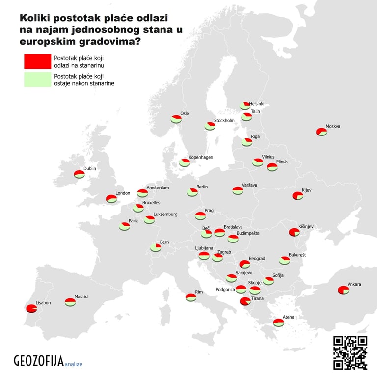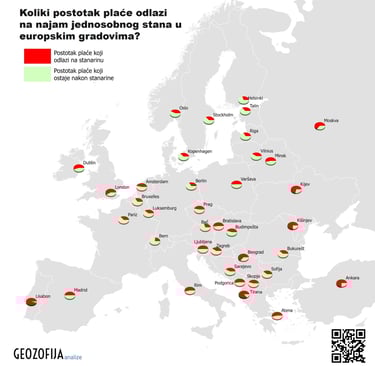 Analiza priuštivosti: Koliki postotak plaće odlazi na najam jednosobnog stana u europskim gradovima?